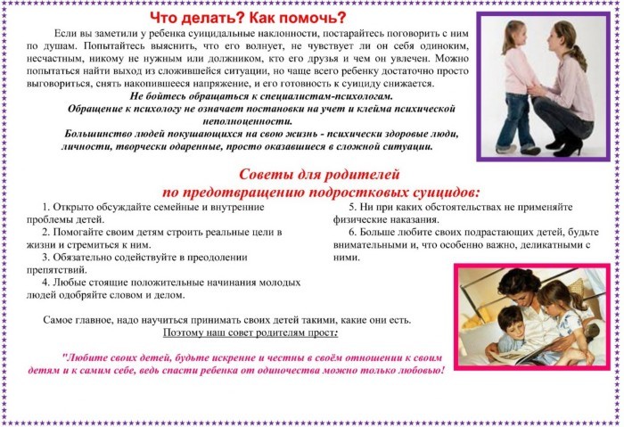 ПАМЯТКА ПО ПРОФИЛАКТИКЕ СУИЦИДАЛЬНОГО ПОВЕДЕНИЯ НЕСОВЕРШЕННОЛЕТНИХ
